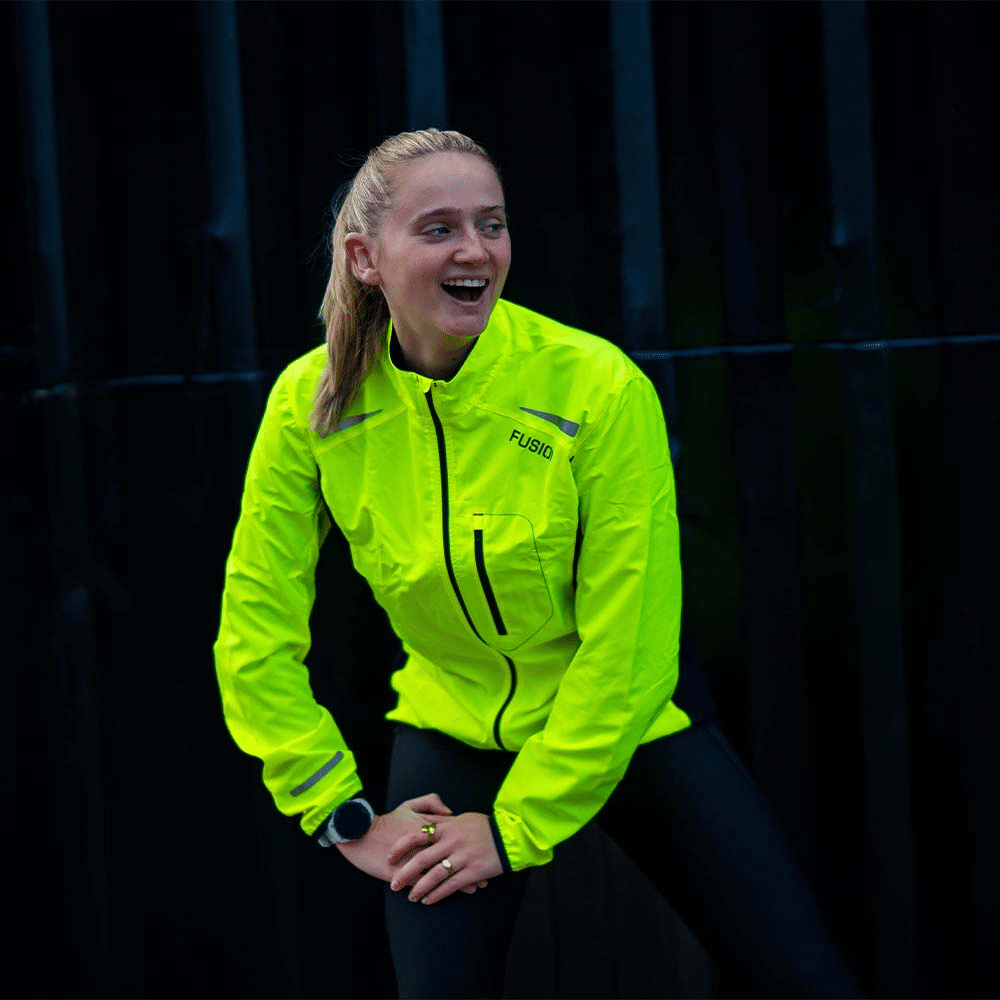 This Fusion running jacket has the answer. The fabric is wind- and water resistant and at the same time reflective.Stay visible and warm on winter days.