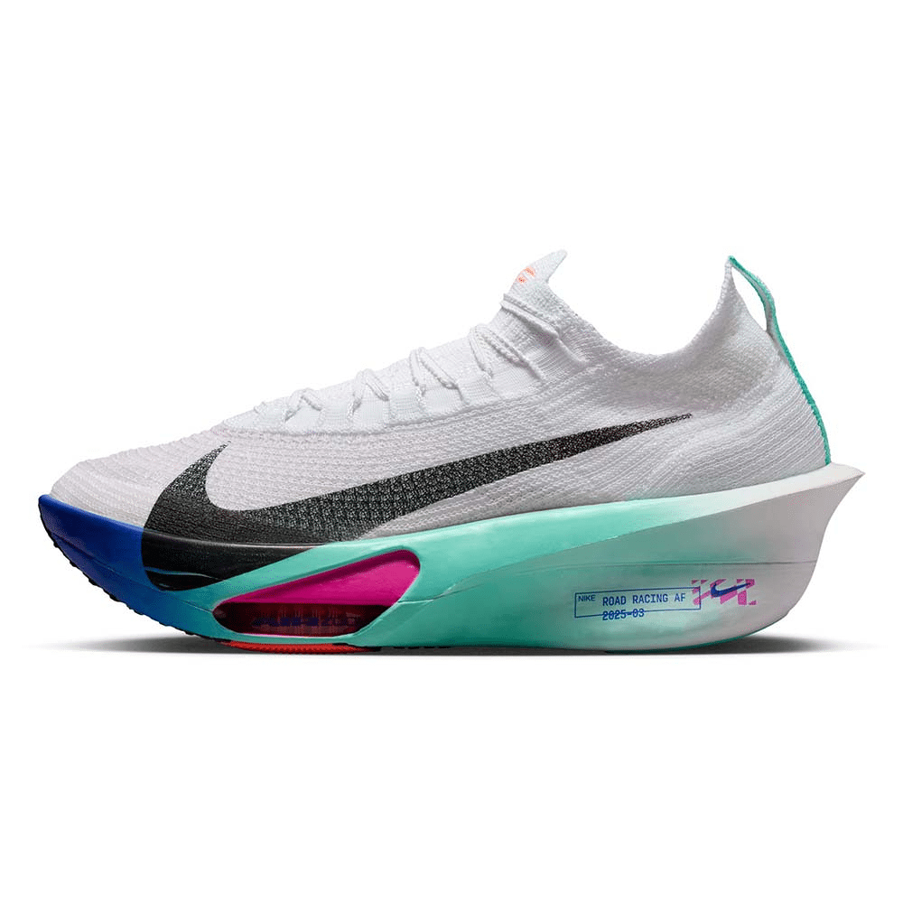 This Nike Alphafly 3 is the lightest Alphafly ever. He features a slightly wider carbon fiber plate for increased stability. Plus, a fully connected ZoomX foam midsole for smoother transitions and an all-new Atomknit upper designed for improved multidirectional containment and breathability. The notched laces offer a secure but soft lace-up. The integrated knit tongue with lofted padding helps alleviate lace pressure.