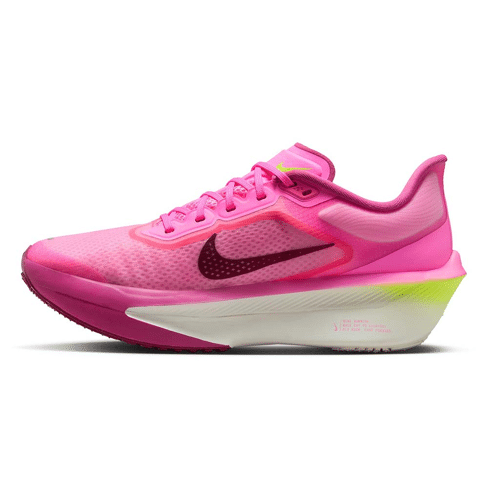 The Nike Zoom Fly 6 features Nike’s lightest midsole material: ZoomX foam. This foam delivers impressive energy return with every step, without adding much weight to your feet. Combined with a full-length carbon plate, it provides extra responsiveness and speed.
