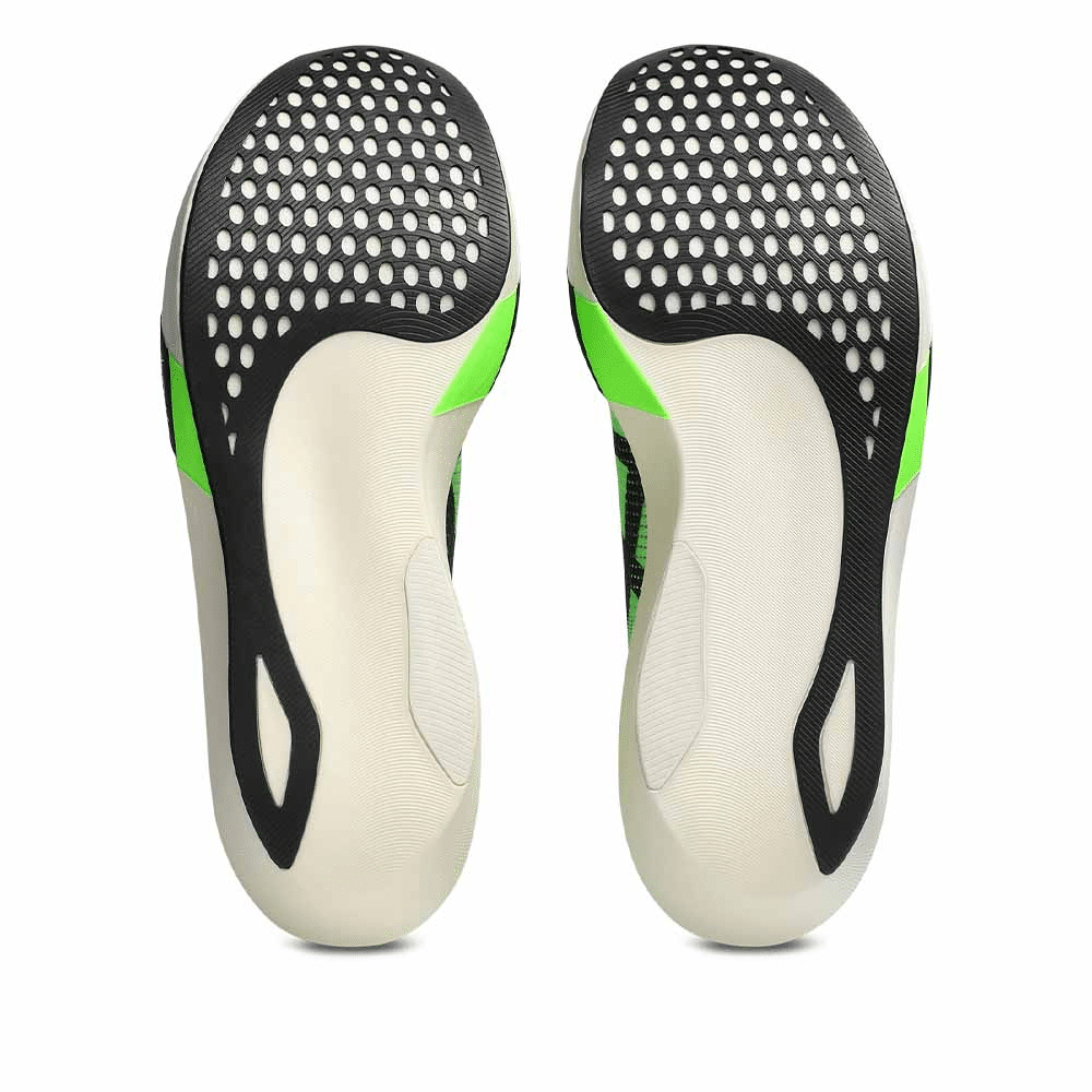 Met de ASICS Metaspeed Edge Tokyo start én finish je aan een toptempo. De carbonplaat duwt je vooruit en zorgt er dus voor dat jij energie kan besparen. Zo kan je ook na 30 kilometer je tempo behouden.