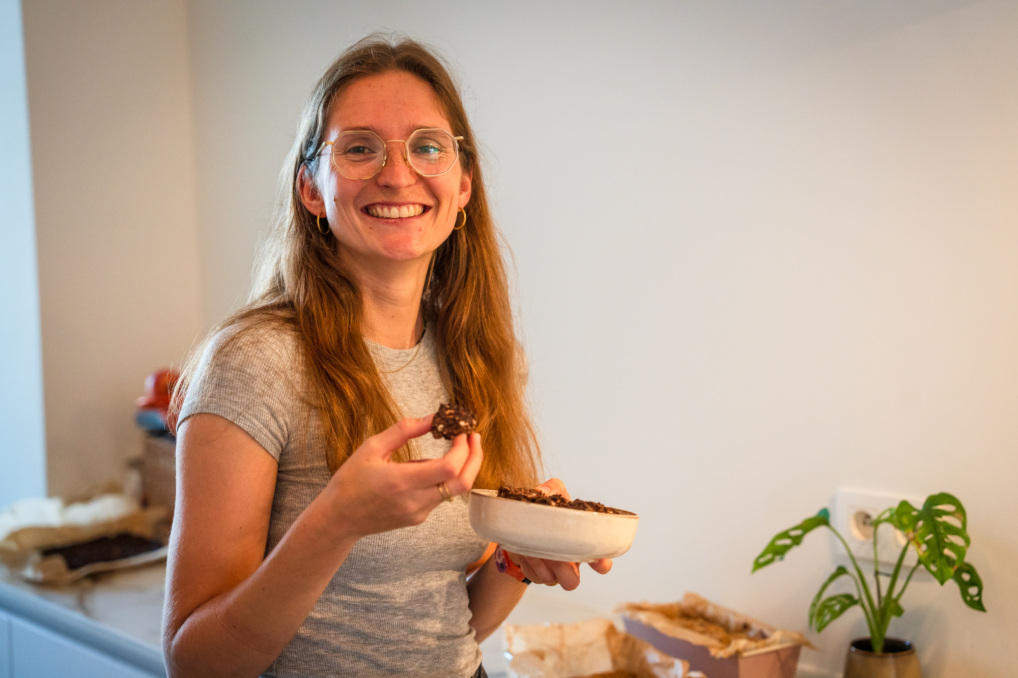 Dat is afhankelijk van de duur en intensiteit van je sportsessie. Voor wedstrijden is het aangeraden om twee uur voor de start voldoende koolhydraten te eten. Je vermijdt best te veel vezels. Voorbeelden zijn havermout met banaan, pannenkoeken, witte boterhammen met confituur... Net voor de start kan je nog een snelle suikerbron nemen, zoals een gelletje of banaan. Ga je een uurtje joggen? Dan kan een banaan, peperkoek of andere kleine energiebron voldoende zijn. Natuurlijk is dat voor iedereen anders, en zal je zelf snel ondervinden wat voor jou het beste werkt.